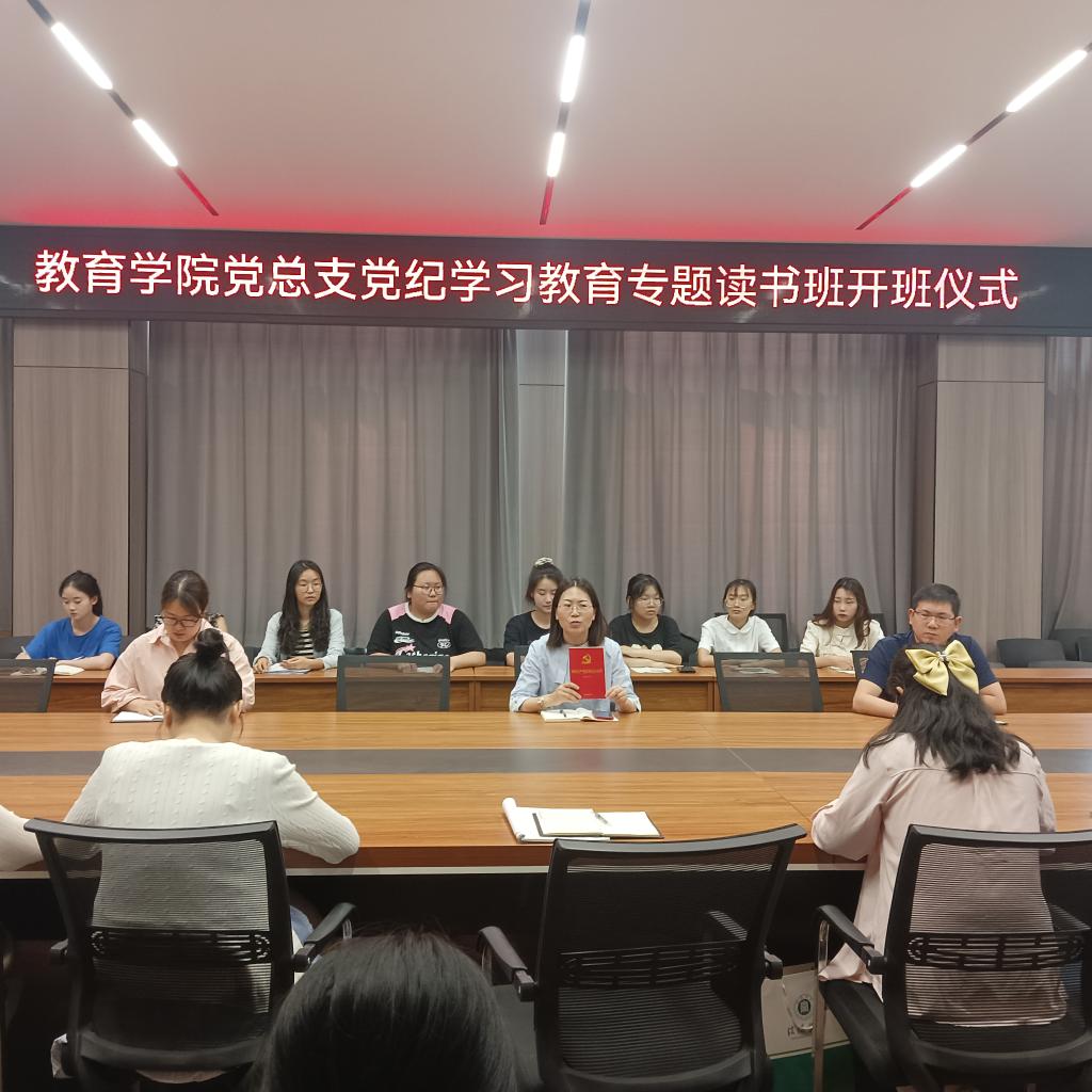5月16日至17日,教育学院党总支举办党纪学习教育专题读书班。5月16日下午,读书班开班仪式在社科楼109会议室举行。教育学院党总支委员、各党支部书记及教工、学生党员代表参加了开班仪式。会议由党总支书记刘颖方主持。