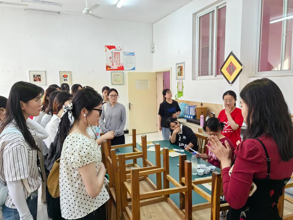 在参观过程中,同学们认真观摩了教学场所,积极向特教的老师进行请教。并与学校的特殊儿童进行了互动交流。