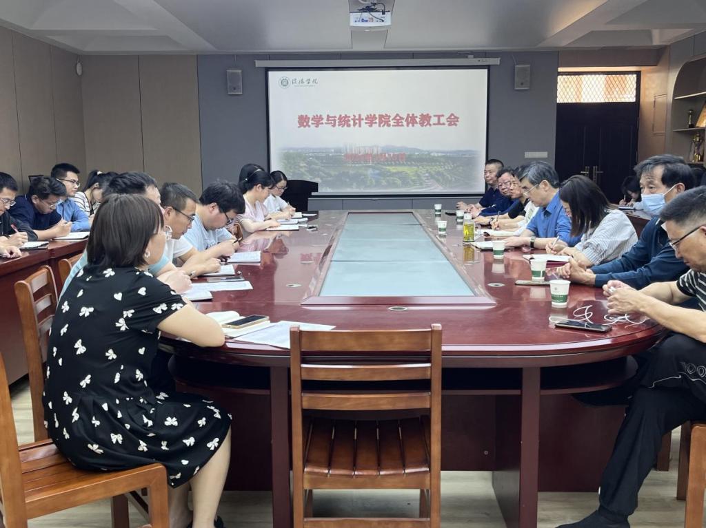 5月16日上午,数学与统计学院在数计楼407会议室召开全体教师会,传达学校党委决定,部署近期重点工作。会议由院长俞迎达主持。