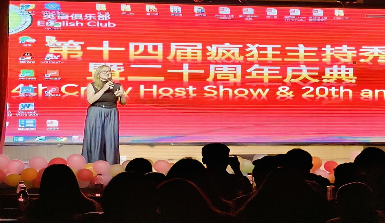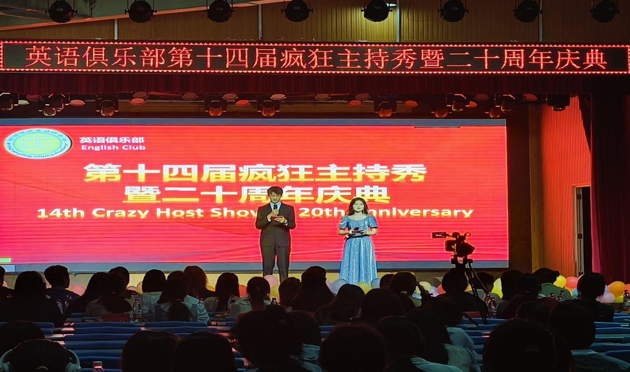 为增强同学们的自信心和舞台魅力,由外国语学院主办、英语俱乐部承办的第十四届疯狂主持秀暨英语俱乐部二十周年庆典于5月14日晚在大学生活动中心举行。本次活动邀请的嘉宾有外国语学院院长罗德喜、学工干事何珊珊、团总支书记郑青、外教Anna老师、社团指导教师陈俊明及各社团代表。