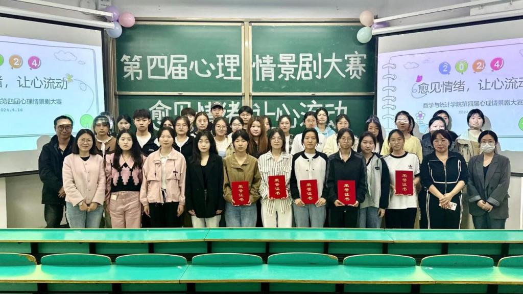 为全面贯彻党的教育方针,推进心理健康素质教育,促进大学生思想道德素质和心理健康成长,4月16日下午,数学与统计学院在数计楼107教室隆重举办第四届“愈见情绪,让心流动”心理情景剧大赛。