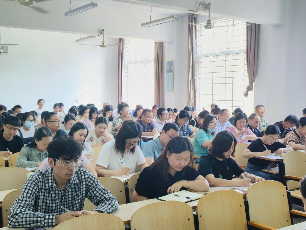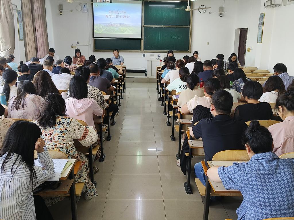 5月28日下午,外国语学院在外语楼202教室召开全体教师大会。外国语学院院长罗德喜、党总支副书记程娇炎、教学副院长李静、班子成员和全体教师参加了会议。会议由李静主持。