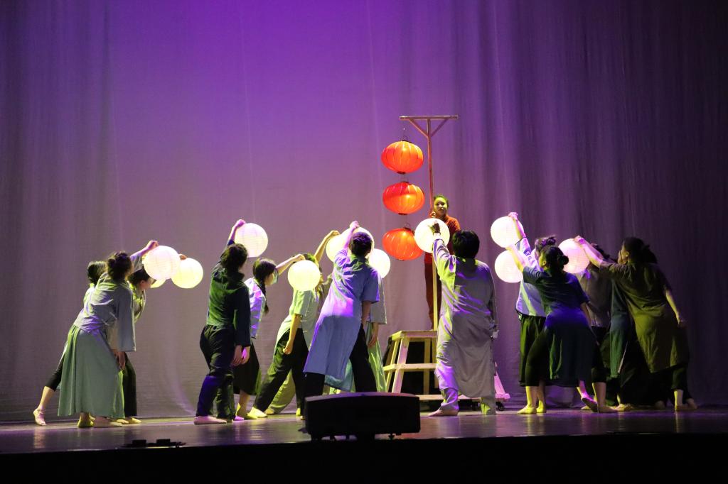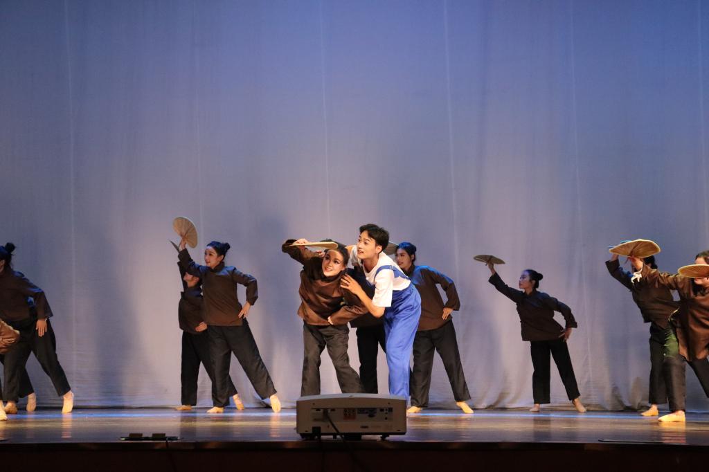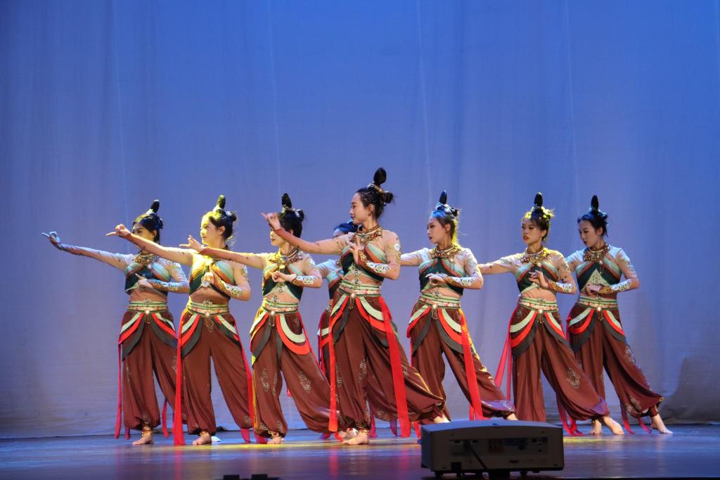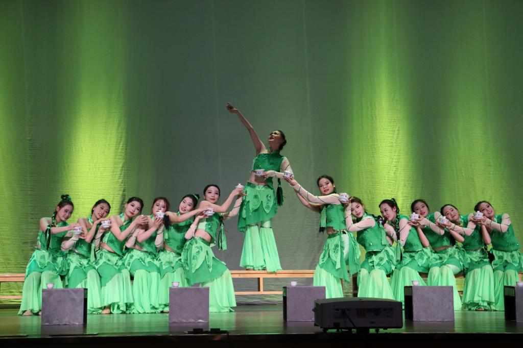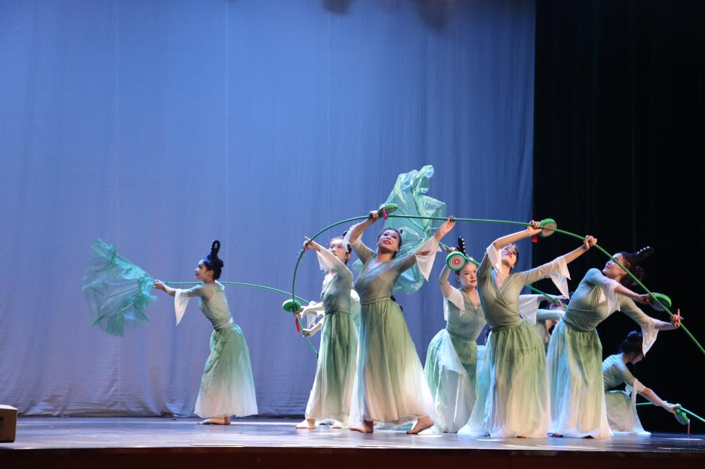 舞蹈《风吹稻花香两岸》,表达了袁隆平先生只因想实现一场梦而奉献了自己的一生的动人事迹,舞姿婀娜像金黄的麦穗随风摇摆,再现了“禾下乘凉梦,十里稻花香”的动人场景。舞蹈《天浴》圣洁的舞蹈随着水流声起,灵动的身影随水流声舞动仿佛使得我们身心灵魂得到净化,呈现出大自然与人类和谐并存的美好画面。舞蹈《我和姥姥》一把把蒲扇轻轻晃动带走了记忆里那蝉鸣的夏天,带来了那份对亲人的思念和留恋,留下了那份平凡而伟大的爱。舞蹈《莲鼓越歌行》舞者们一手执莲鼓,一手附击,铃鼓伴歌、踏地为节,曼妙的舞姿像荷花在微风中摇曳,展现出了她们的俏丽、质朴与美好。