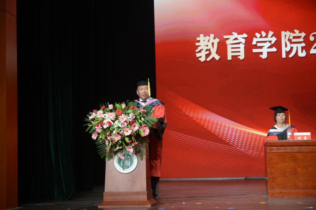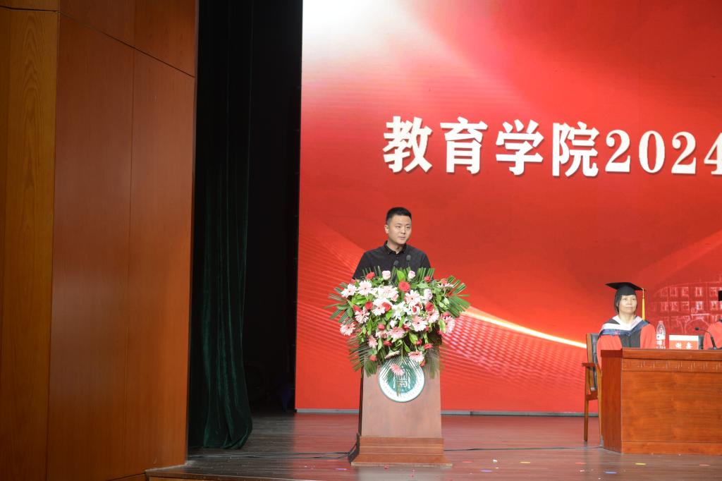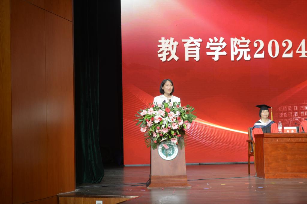 6月4日下午,教育学院在音乐厅隆重举办了2024届毕业典礼暨学位授予仪式。名誉院长、党总支书记刘颖方、副院长段海丹,特聘教授赵国权、刘丽红、谢广山、王可,副教授陈小静、吴俊娜、刘晓妹、谢鑫、王霞以及班子成员、教研室主任、毕业班辅导员和2024届全体毕业生共同参加了典礼仪式,刘颖方主持了典礼仪式。