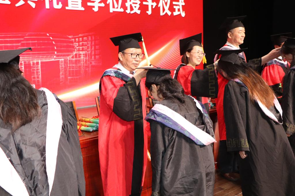 在热烈的掌声中,名誉院长为优秀毕业生代表颁发证书;党总支书记刘颖方和副院长段海丹为2024届校友联络员颁发聘书;学位评定分委员会成员为2024年考研先进个人颁发纪念品,并为2024届毕业生授予学位,正冠拨苏,同时授予校长寄语。