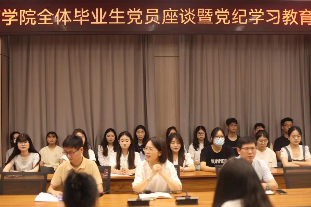 座谈会上,毕业生党员们畅谈了各自的成长收获,分享自己在校期间学习、生活和工作中的经历和感受,并围绕就业选择、考研学习、自我突破等方面展开讨论。同学们纷纷表达了对学校和学院的感恩之情,并从学风建设、课程设置、管理服务等方面为学校与学院的建设发展提出了建议。