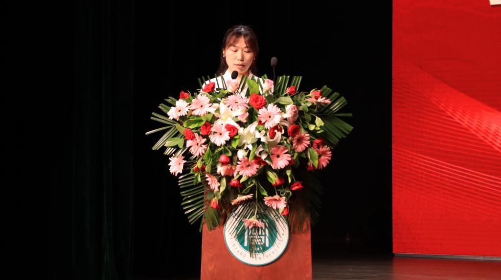 青年教师代表、河南省课堂教学创新大赛一等奖获得者王玉静老师发言,她分享了自己与同学们一起成长、成熟的经历,祝贺同学们顺利完成学业,并给予了殷切期盼,欢迎大家常回家看看。