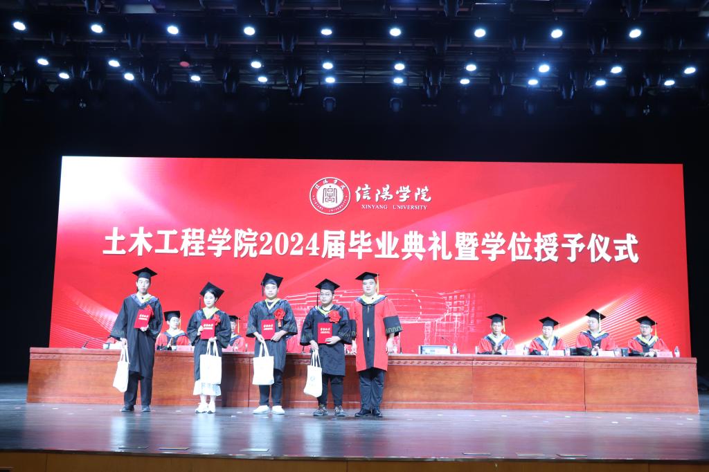 毕业典礼在庄严而雄壮的国歌声中拉开帷幕。教学副院长杨子泉宣读了《信阳学院土木工程学院关于授予2024届毕业生学士学位的决定》。行政秘书郗利选宣读了《关于表彰2024届优秀毕业生的决定》。学工干事徐超宣读了《信阳学院土木工程学院关于聘任2024届校友联络员的决定》。