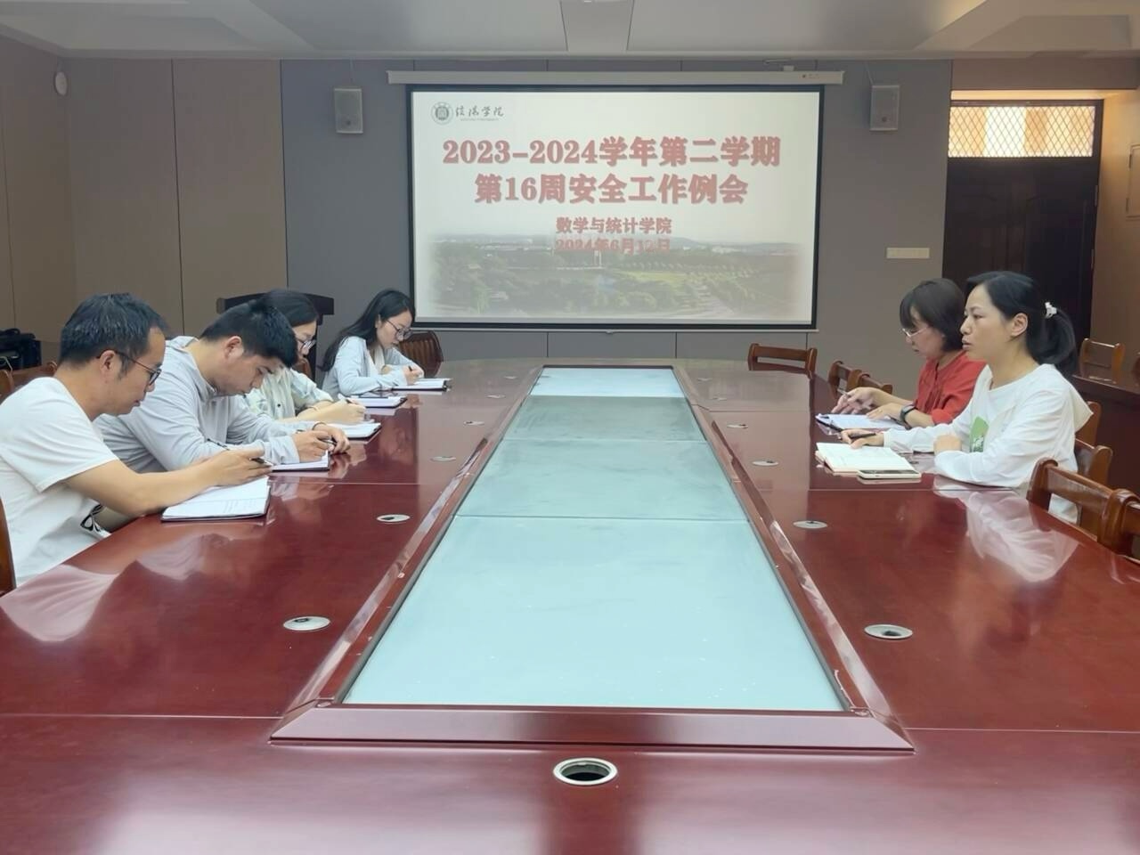 为保证期末安全工作平稳运行,切实增强学院安全管理服务意识,6月12日上午,数学与统计学院在数计楼407会议室召开本学期第16周安全工作例会,党总支书记高昌慧、学工干事田媛、全体辅导员参加此次会议,会议由田媛主持。