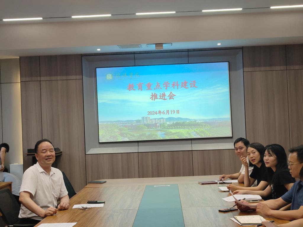 6月19日下午,信阳学院教育重点学科建设推进会于社科楼109会议室举行。教育学院名誉院长、副院长段海丹、教育重点学科带头人赵国权教授出席会议,教学干事刘勋达、各教研室主任,马克思主义学院、大数据与人工智能学院负责人以及学科建设成员参加了会议。会议由段海丹主持。
