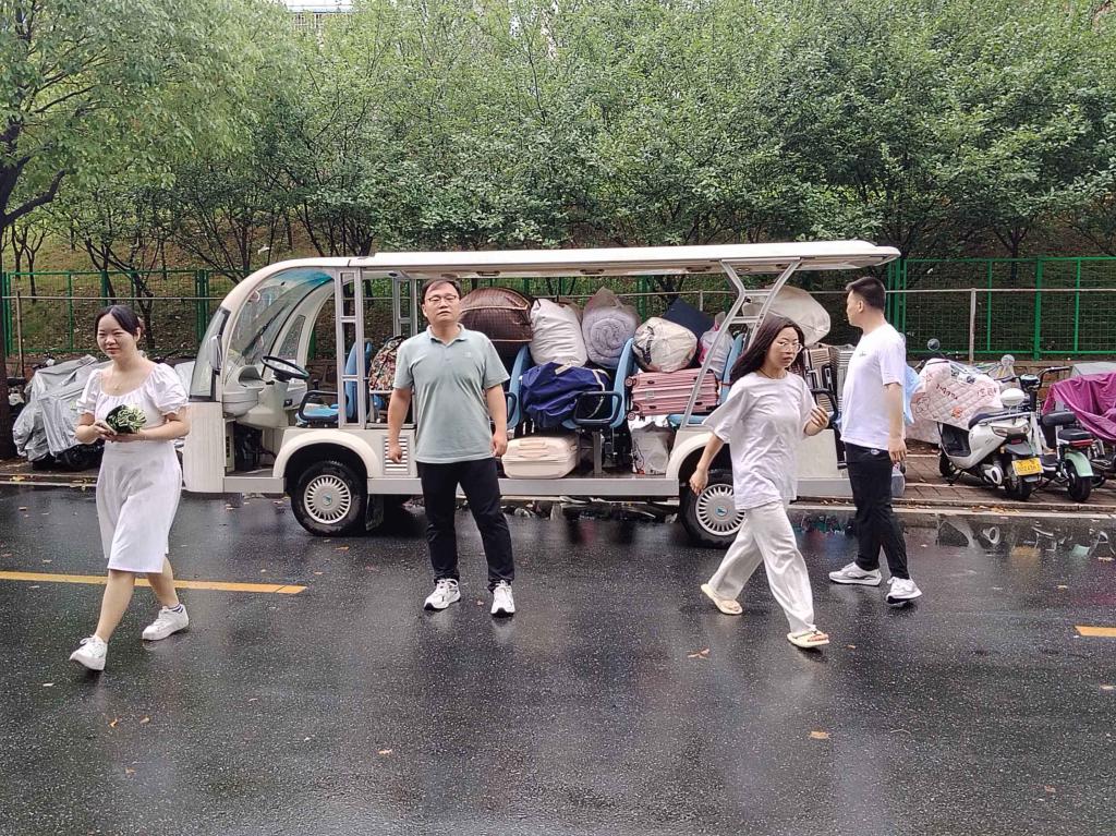 下午三点,理工学院党总支组织委员杨晓杰带领一众党员教师们驾驶校园摆渡车到女生宿舍20、18、14、10号宿舍楼下,党员教师们不辞劳苦,冒着暴雨帮助学生将行李包裹装到车上;党员教师鲁有强开私家车到四号宿舍楼帮学生搬运行李,整个过程团结协作,分工配合,搬迁工作进行得井然有序。下午五点左右,整个搬迁工作顺利完成,同学们为志愿老师们送去矿泉水,向他们表达衷心的感谢。