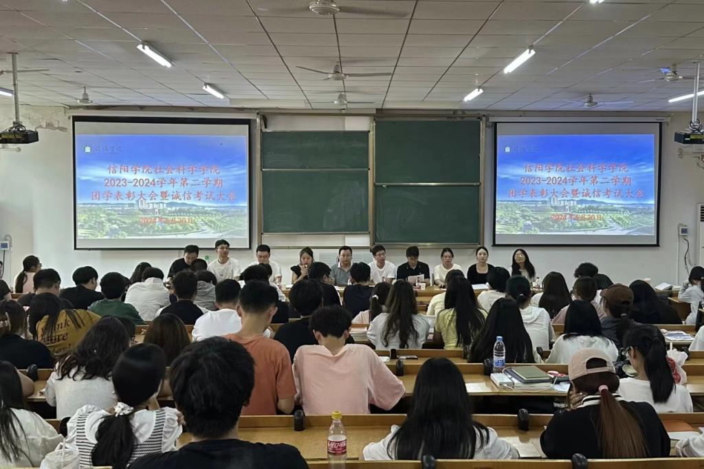 6月20日下午,社会科学学院在社科楼219教室举行2023-2024学年团学表彰暨诚信考试大会。党总支书记胡志国、学工负责人陈苗苗、团总支书记韩铁映、全体辅导员老师以及学生干部参加本次活动。本次会议由陈苗苗主持。