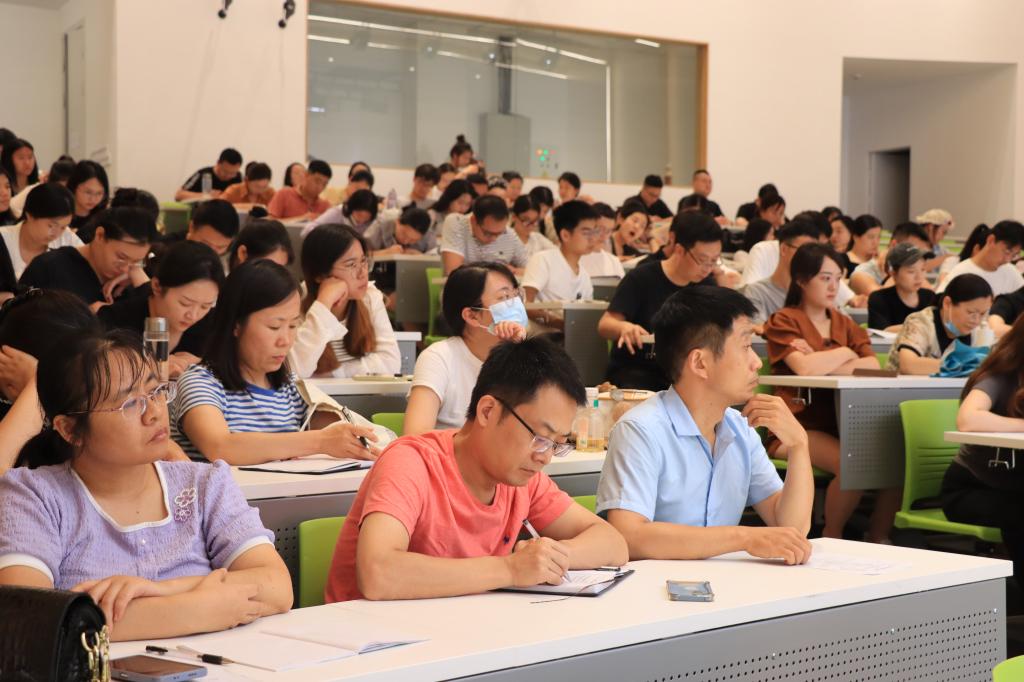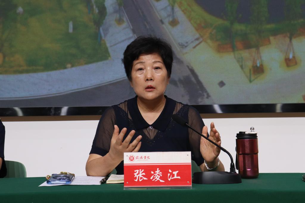 文学院院长张凌江指出,师德师风的建设是文学院建设高水平师资队伍的关键,全体教职工应该牢记立德树人的初心使命,不断提高自身的教学水平,进一步壮大文学院的师资队伍。张凌江针对当今教育改革下文学院各个专业的发展和面临的问题分享了自己的见解,她指出老师在注重提高自身水平的同时,更要将实践放到第一位,帮助学生在体验实践的乐趣的同时,也有勇气与自信去面对社会的检验。