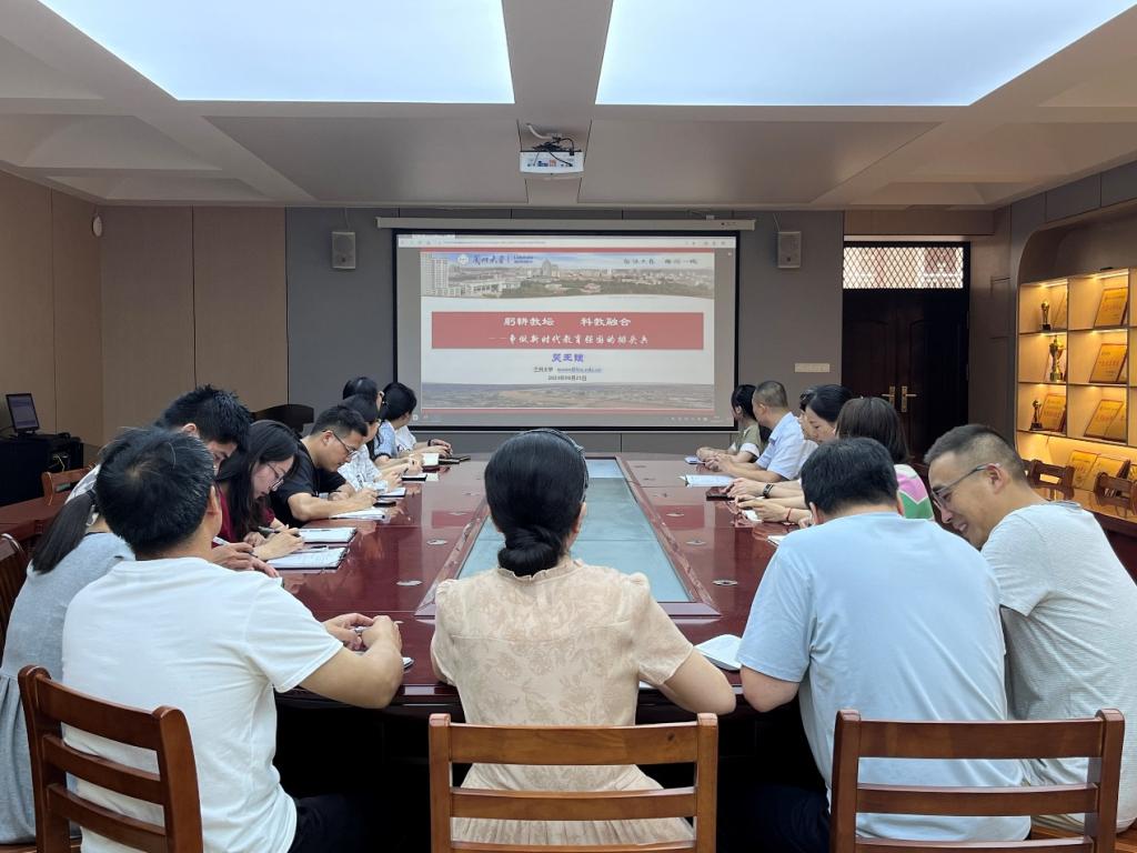 为深入学习贯彻落实习近平总书记关于教育家精神的重要指示,持续加强和推进教师思想政治素质和师德师风建设,6月21日,数学与统计学院组织收看了“教育家精神大讲堂”培训讲座,讲座主题为“躬耕教坛,科教融合——争做新时代教育强国排头兵”。学院院长俞迎达、党总支书记高昌慧、教学副院长张聪及各教研室教师代表参与了本次培训学习。