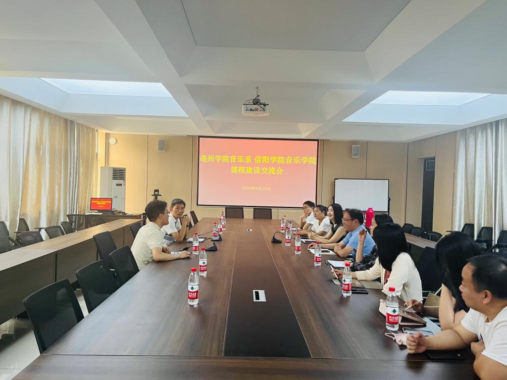 6月24日,亳州学院音乐系应邀来音乐学院开展课程建设交流会,交流会在艺术楼215会议室举行。亳州学院音乐系教师代表张强胜、徐涛,我校音乐学院党总支书记郑山峰、副院长杨辉以及各教研室主任和教师代表共同参加了会议。
