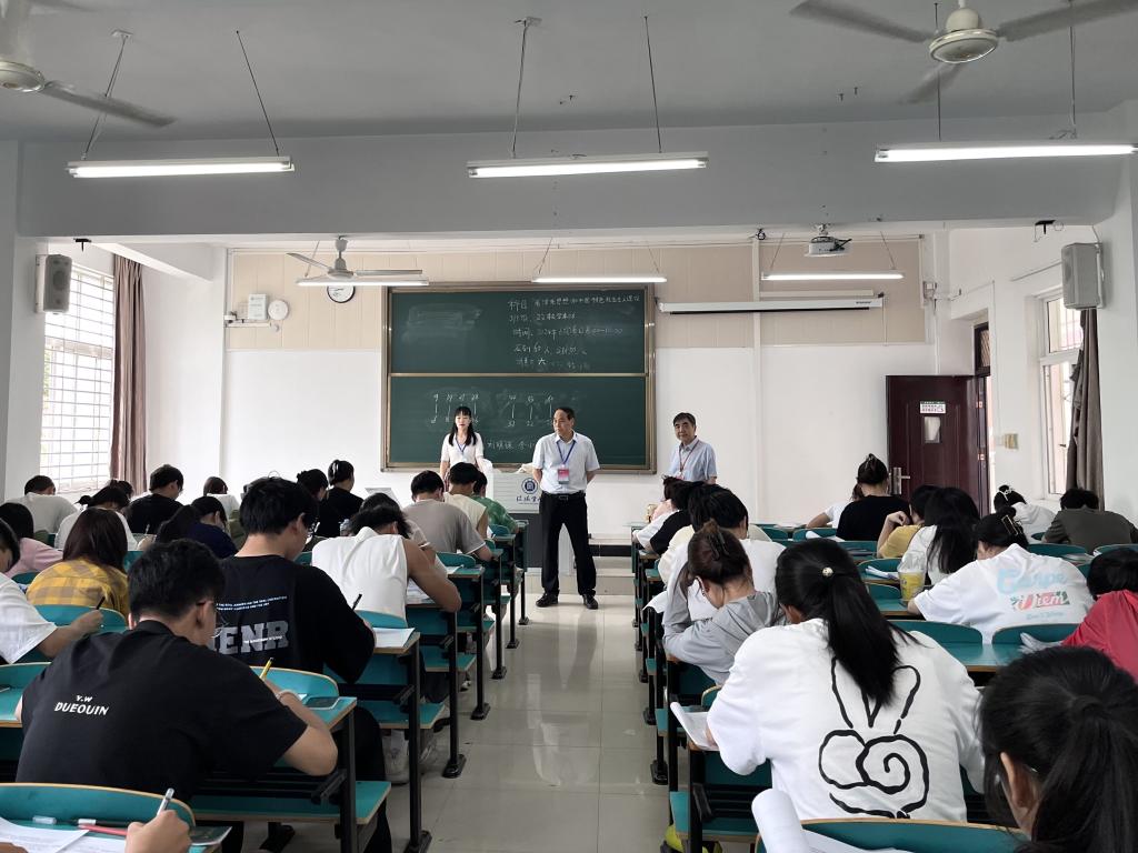 为严肃考风考纪,确保期末考试顺利进行,6月26日上午,校长王北生一行在数学与统计学院院长俞迎达、党总支书记高昌慧、教学副院长张聪等班子成员的陪同下深入各考场进行巡视检查。