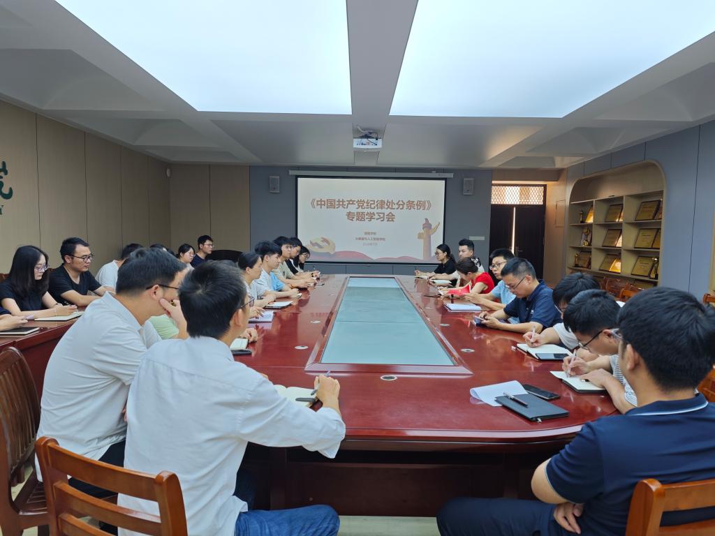 2024年7月5日下午,大数据与人工智能学院在数计楼407会议室举行以“严守工作纪律、生活纪律”为主题的党纪学习教育专题会议。会议由学院党总支书记郭二军主持,党总支委员、各党支部书记、各支部委员及全体教工党员参加本次会议。