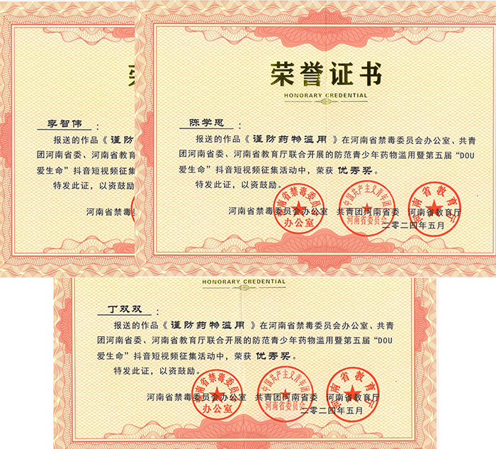 近日,河南省禁毒委员会办公室、共青团河南省委、河南省教育厅发布《关于公布防范青少年药物滥用暨第五届“DOU爱生命”短视频征集活动获奖作品的通知》(豫禁毒办通〔2024〕3号),我校土木工程学院报送的作品《谨防药物滥用》在本次评选活动中荣获优秀奖。