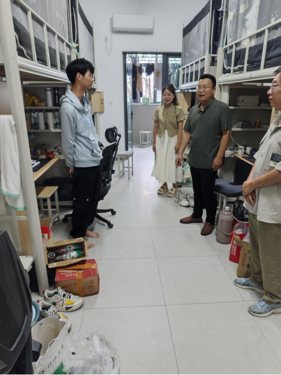 胡志国与同学们亲切交谈,了解同学们的学习和生活情况,询问同学们在新校区学习生活中还有什么困难和问题,叮嘱同学们合理安排时间,劳逸结合,并提醒留校学生注意防火、防盗、防骗、防暑及人身安全,保持与家长经常性的沟通联系。