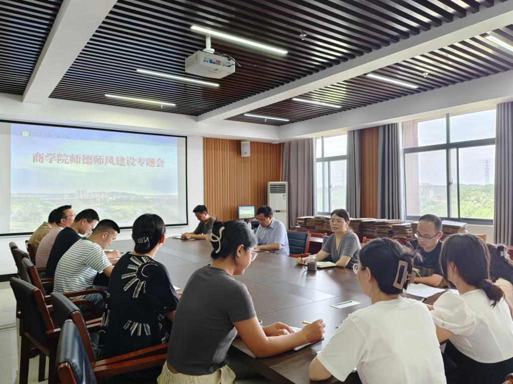 7月8日上午,商学院在综合楼715会议室召开了师德师风建设专题会,院长刘玉来、党总支书记胡秀云和全体辅导员、学生支部书记参加了此次会议。会议由胡秀云主持。