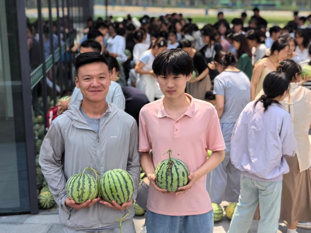 接着,各位领导以及辅导员老师为25届考研学子分发西瓜,并送上自己的祝福和关心。
