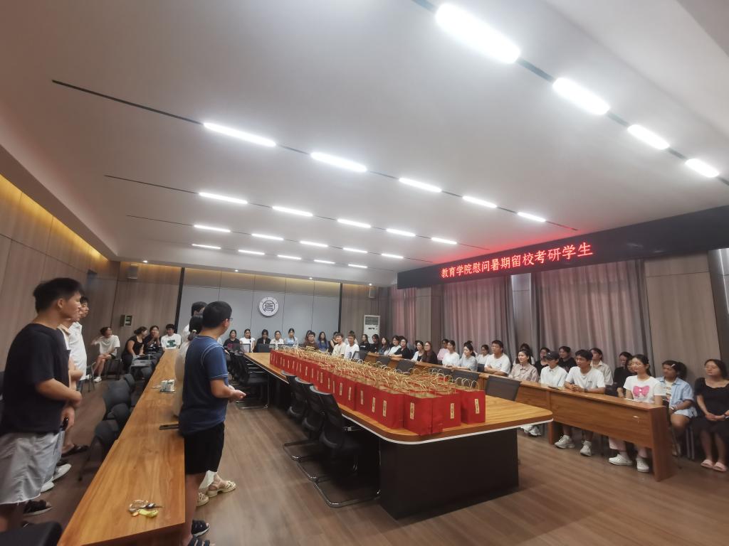 在酷热的暑假期间,当大部分学子享受假期、放松身心之际,教育学院的一批考研学生毅然选择留校,坚守学习岗位,为追求更高的目标而努力。为了向这些勤奋刻苦的学子表达关怀与支持,教育学院党总支书记刘颖方、副院长段海丹及班子成员和21级辅导员,于8月16日下午在社科楼109会议室对考研留校学生开展了慰问活动。