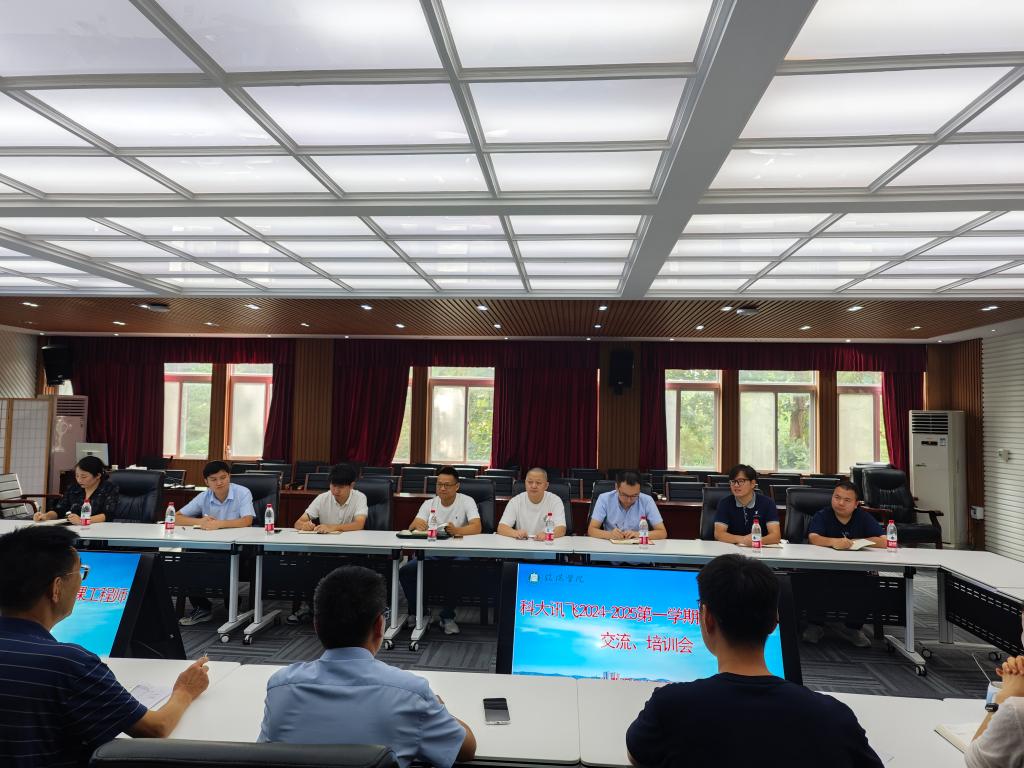 为进一步推进校企合作共建人工智能现代产业学院走实走深,8月30日上午,大数据与人工智能学院在人文楼208召开2024-2025学年第一学期科大讯飞教师培训、交流会,院长邬长安、党总支书记郭二军、教学副院长毛凤翔、教学干事徐良、骨干教师贾彦茹,科大讯飞全体在校工程师参加此次培训交流会。