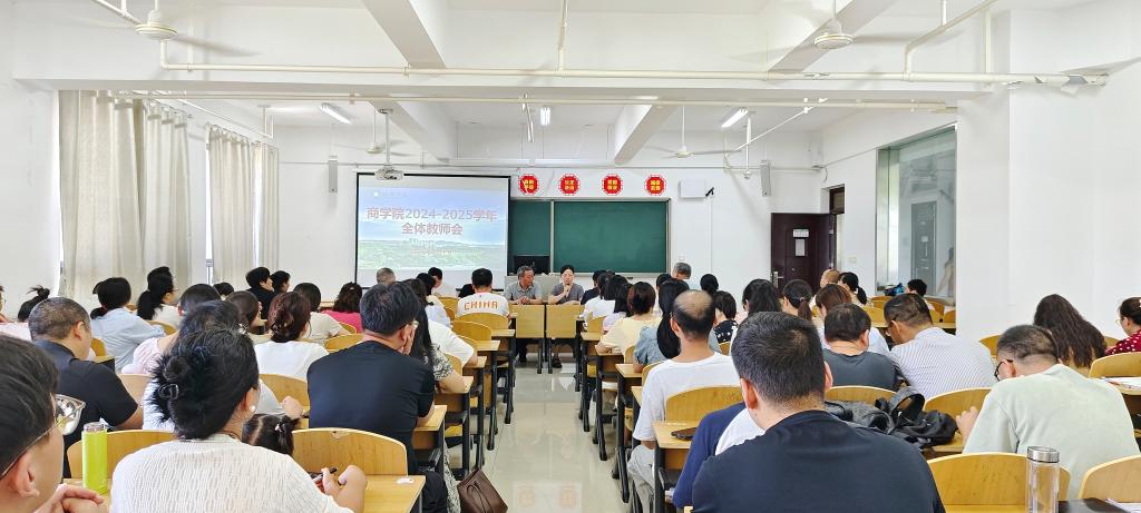 胡秀云首先总结回顾了2023-2024学年学院工作,分析通报了2024年学院招生录取情况,传达并带领老师们学习学校2024-2025学年工作要点和王北生校长讲话精神,并对新学期相关工作做了安排和强调。