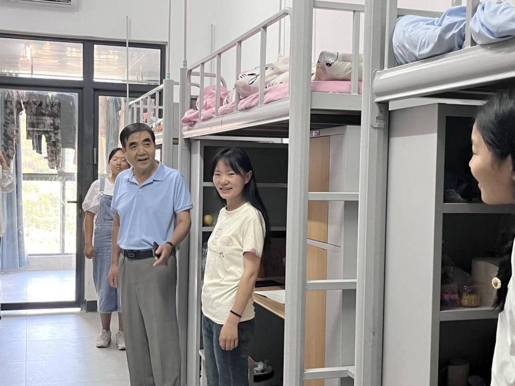 为及时了解新生入校适应情况,传递学院对2024级新生们的关心与期望,9月8日下午,数学与统计学院院长俞迎达、党总支书记高昌慧、教学副院长张聪、学工干事田媛、新生辅导员胡涛、范学琴深入2024级新生宿舍进行慰问走访。