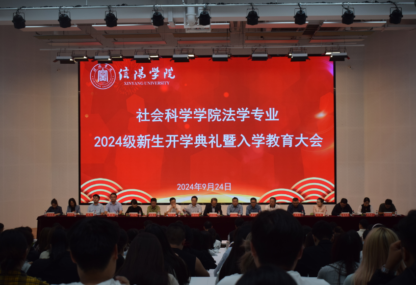 9月24日下午,社会科学学院在南湖校区教二楼117报告厅举行2024级新生开学典礼暨专业思想教育大会。学院院长郭志祥,党总支书记胡志国,教学副院长寇博文及班子成员,特邀嘉宾信阳市律师协会会长陈礼友、信阳市文物考古研究所所长牛长立,特聘教授李文发、周占生、尹全海、李俊恒,各教研室主任,骨干教师代表,新生班级辅导员和全体2024级新生参加了本次典礼。