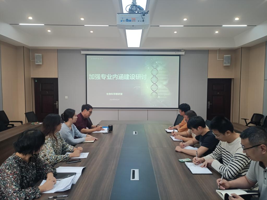 为进一步推动生物科学专业建设,规范生物科学专业,理工学院生物科学教研室于9月24日下午在理工楼201会议室举办了有关《加强专业内涵建设》为主题的公开研讨会,校教学督导任柏林教授,理工学院教学副院长李晓严以及生物科学教研室全体教师参加了本次公开教研活动。本次会议由生物科学教研室主任高进勇主持。