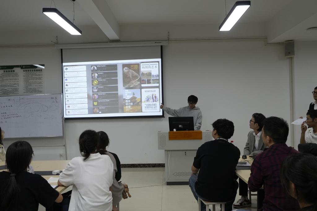 其次,教师张伟介绍了数字媒体艺术专业的相关学科竞赛以及学科未来的发展方向,针对各种竞赛的细则进行了详细地解读。同时,除了专业介绍,本次见面会还特别设置了经验分享环节。优秀学生代表张云轩、孙凡迪、苏秦缘等人分别上台发言,分享了自己的学习心得和实践经验,鼓励新生们勇于探索、不断学习,同时也提醒新生们要合理安排时间,平衡好学习与生活。