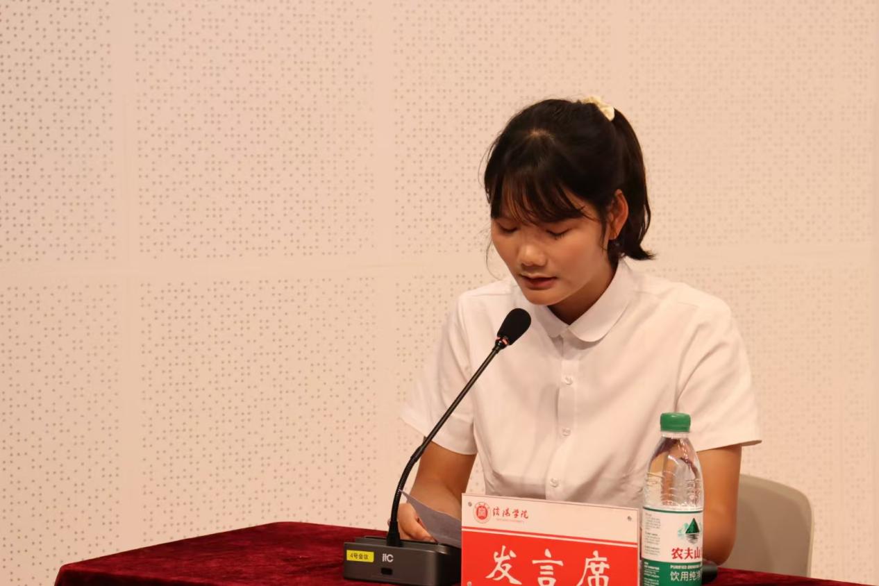 接着,老生代表于芳媛和新生代表王琪也分别上台发言。2024年度国家奖学金获得者于芳媛分享了自己在校学习和生活的经验,建议学弟学妹们要尽快适应大学生活,合理安排时间,积极参加社团活动,拓展自己的兴趣爱好。王琪则表达了初入大学的激动心情和对未来大学生活的憧憬。她表示,将以学长学姐为榜样,努力学习,积极进取,不辜负学院和家长的期望。