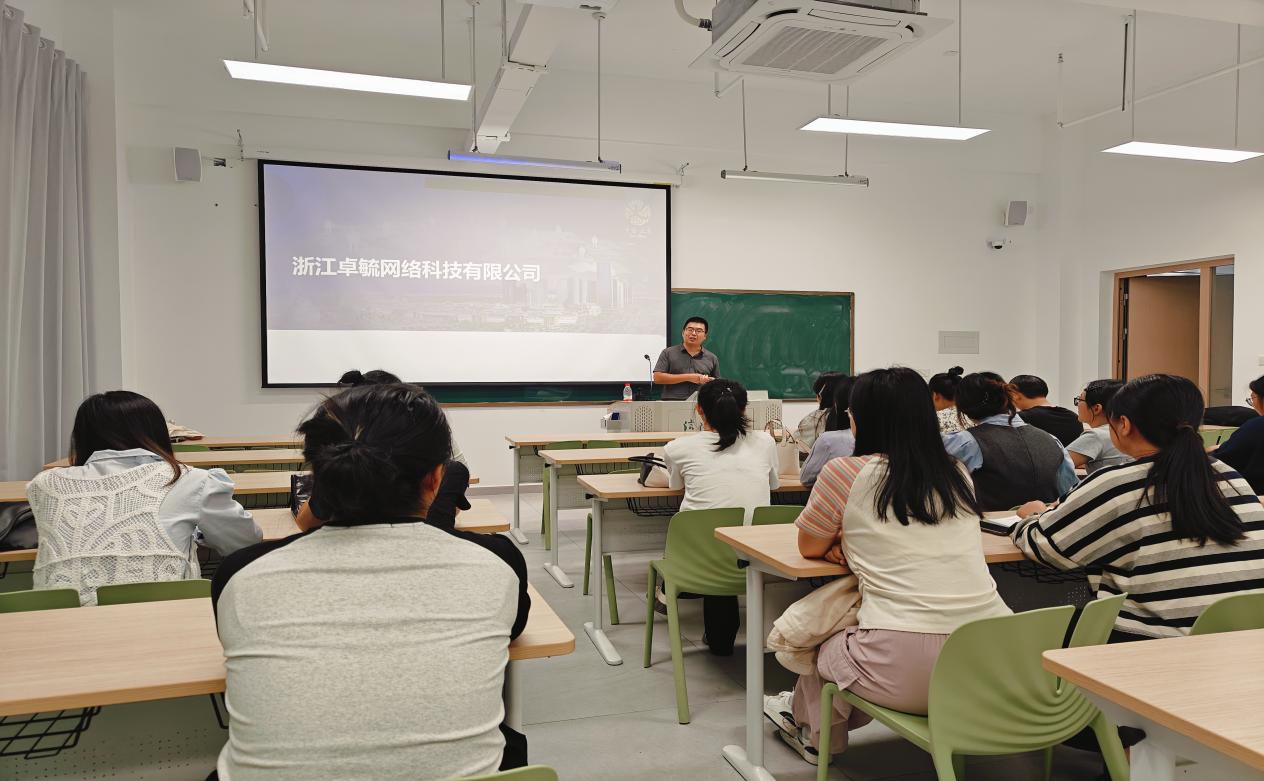 为落实学校关于“访企拓岗促就业”专项行动的要求,拓宽毕业生就业渠道,推进2025届毕业生就业工作,2024年9月27日下午外国语学院在南湖校区教二楼406教室开展了跨境电商实习就业校企合作活动。本次活动邀请了浙江卓毓网络科技有限公司来校为外国语学院毕业班学生做了题为“跨境电商实习与就业”的宣讲活动。参加本次活动的师生有陈俊明老师、井自纯老师和2024届商务英语专业和翻译专业毕业班同学以及英语专业部分毕业班学生代表。本次活动由卓毓公司外贸业务部经理盖跃志担任宣讲嘉宾,陈俊明老师担任主持。
