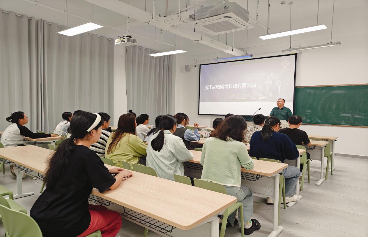 首先,陈俊明老师对该公司做了简单介绍。浙江卓毓网络科技有限公司是由义乌市梦开进出口有限公司、义乌市拓晟进出口有限公司、浙江征鸿厨具有限公司、义乌市龆琦贸易有限公司等20家企业共同成立的。目前公司入驻义乌市北苑街道电商服务中心、馥元纪美妆产业园,是园区指定唯一一家校园招聘企业,与义乌多个电商园区和多家50强企业达成合作,为园区企业发展提供人才保障。