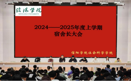 大会开始,陈苗苗老师带领全体与会同学学习《信阳学院学生公寓管理规定》与《信阳学院学生公寓管理违纪处理办法》等文件,并对前期宿舍管理存在的问题进行了总结,然后就近期的宿舍管理工作进行了安排。她强调,宿舍长要切实履行好自己的职责,严格要求同宿舍同学遵守校规校纪,不断提高服务意识,做好安全稳定工作。
