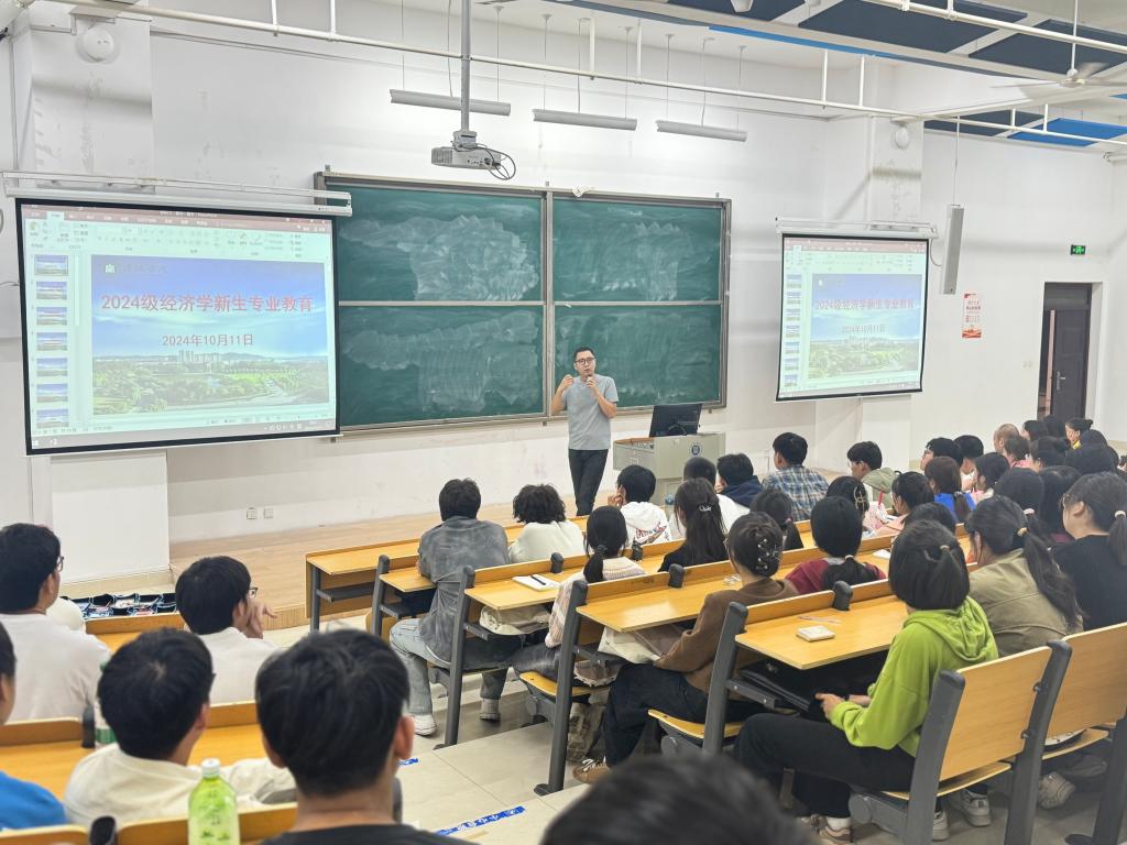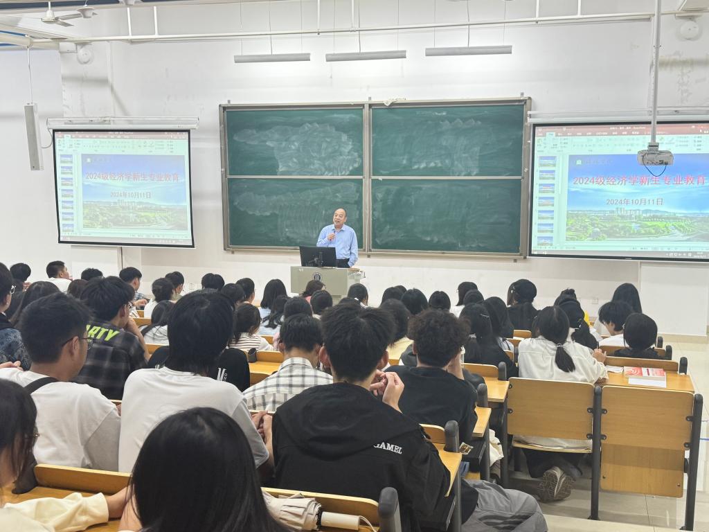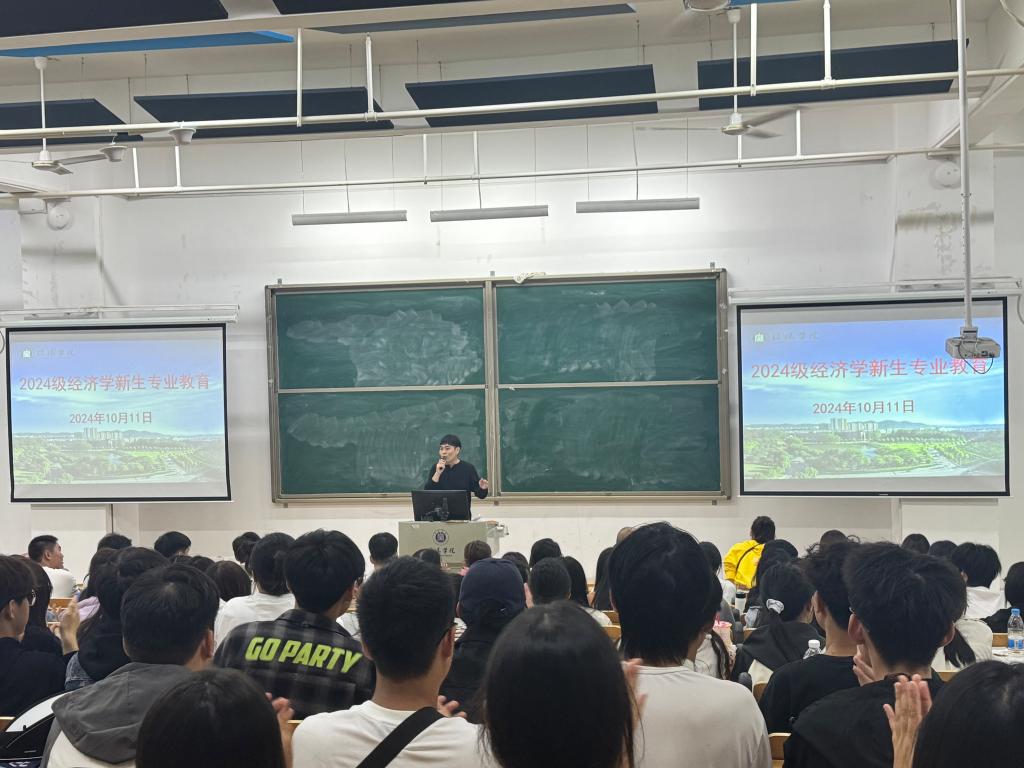 为帮助2024级新生深化对经济学专业的认知,明确学习目标与职业方向,激发内在学习潜能,增强专业认同感,10月11日,商学院经济学教研室教师在综合楼202教室对2024级经济学专业学生开展新生专业教育活动。经济学教研室主任裴奇,特聘教授程怀儒,教师高会静、李鹏等担任主讲老师。