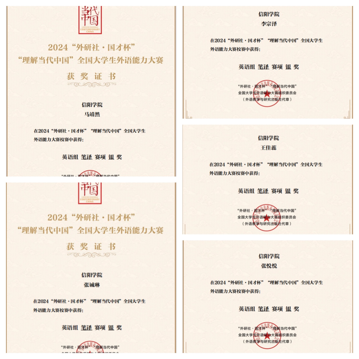 近日,2024“外研社·国才杯”“理解当代中国”全国大学生外语能力大赛笔译赛项校赛结果已经公布,经过激烈角逐,外国语学院在校赛中斩获金奖2项,银奖5项,铜奖6项。