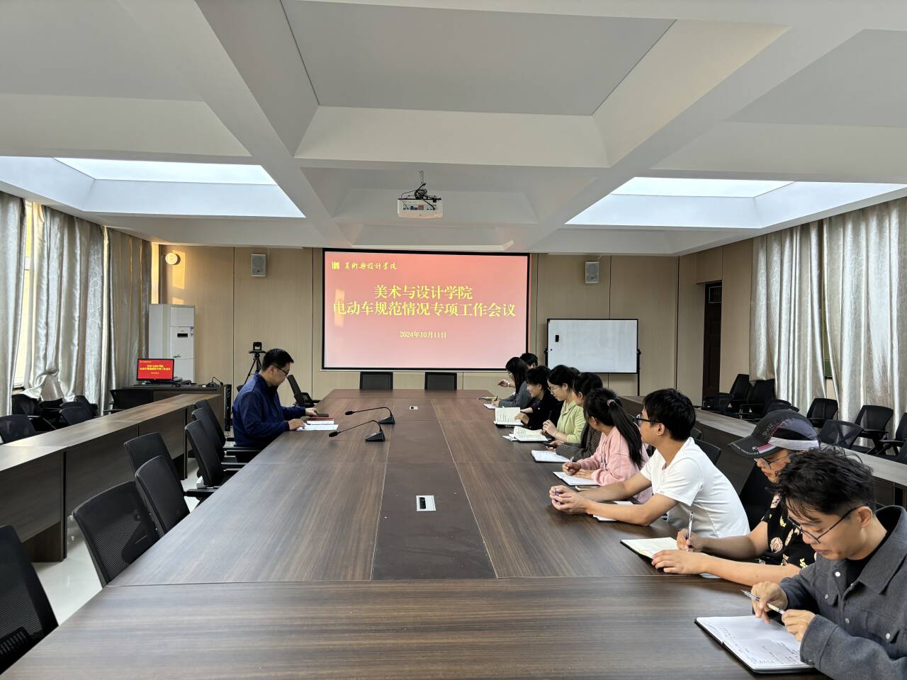 为进一步规范校园电动车停放秩序,提升校园环境美观度,维护校园安全稳定,10月11日,美术与设计学院在艺术楼215会议室召开了电动车规范停放专项工作会议。会议由学工干事秦金峰主持,全体辅导员参加会议。