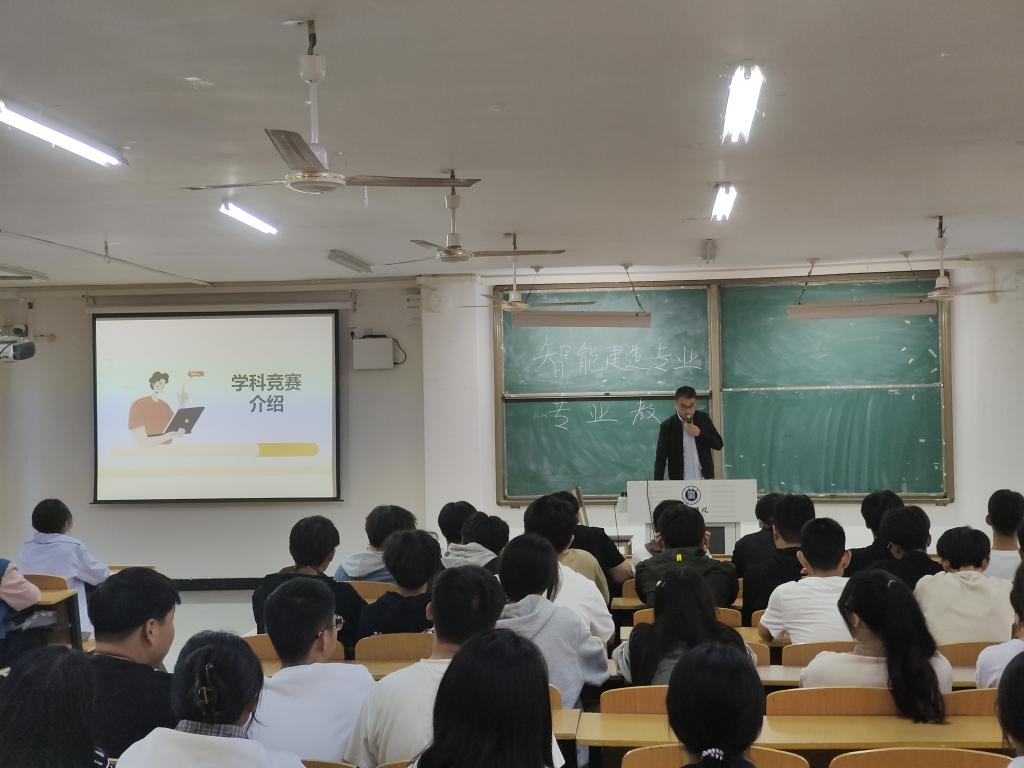 黄小林老师首先对2024级新同学的加入表示了热烈的欢迎,并介绍了到场的专业课教师。他详细介绍了学院近年来取得的成就,并展示了智能建造领域的最新成果,使同学们对专业前沿有了更深入的认识。黄老师还从专业背景、课程设置、专业发展、就业前景等多个角度,对智能建造专业进行了全面而深入的介绍,并结合国家政策,对行业人才需求进行了全面的解读和展望。