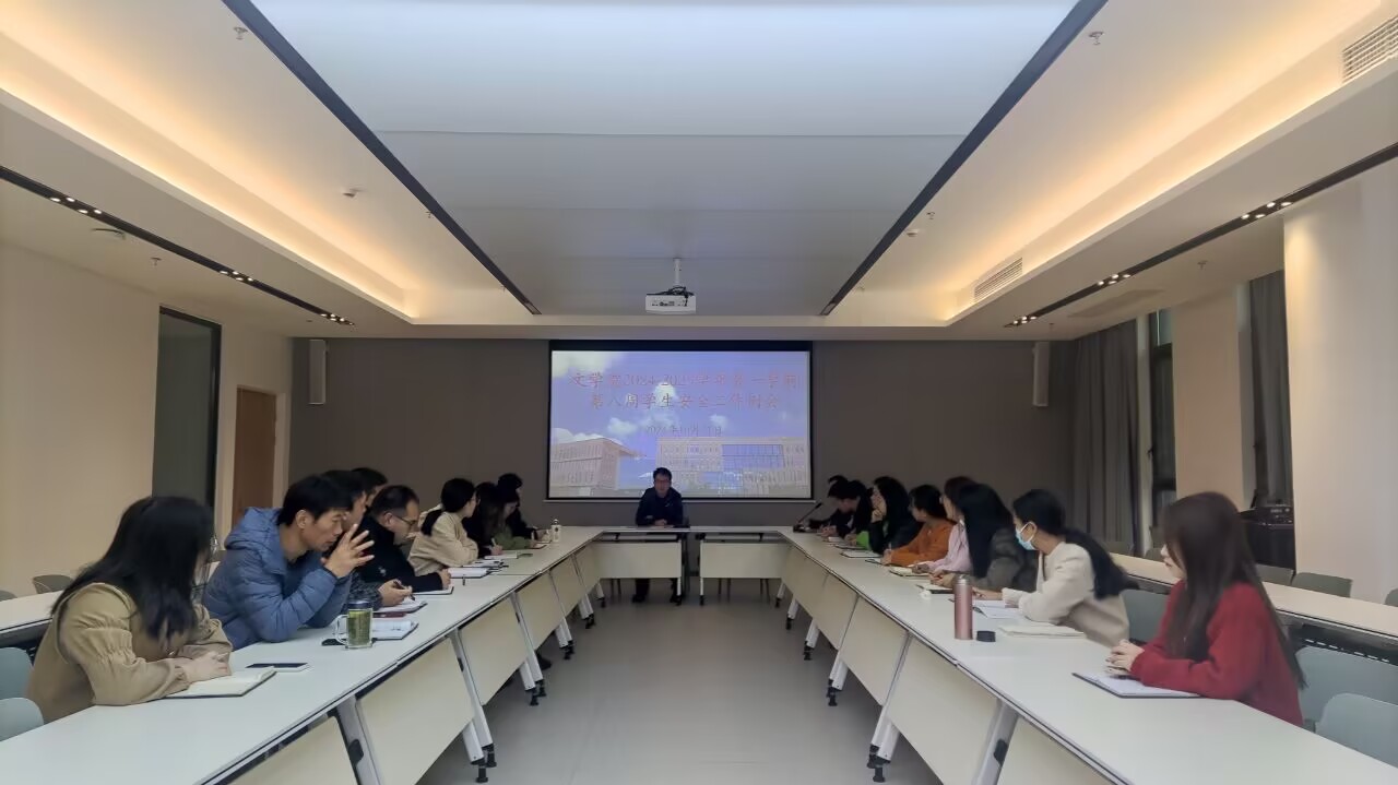 为进一步加强学院安全管理,维护校园安全稳定,10月21日上午,我院在教学楼406会议室召开文学院2024—2025学年第一学期第八周学生安全工作例会,文学院党总支书记李赟、学工秘书何军华、团总支书记段艳婷及全体辅导员参加了会议。会议由何军华主持。
