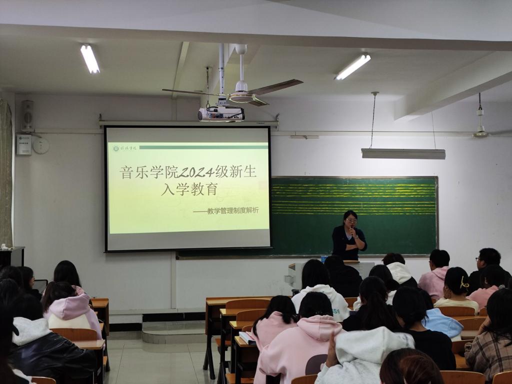 10月20-23日,音乐学院分场次举行了“2024级新生入学教育之教学管理制度解析”专场讲座,2024级全体学生参加并聆听了讲座。讲座由教务干事罗晓霞老师主讲。