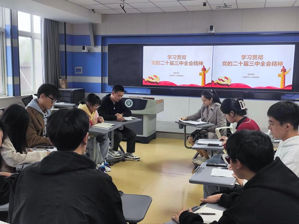 为深入学习贯彻党的二十届三中全会精神,进一步统一思想,紧跟时代步伐,提升理论素养,激发广大师生的奋斗热情,2024年10月22日—23日,大数据与人工智能学院党总支积极开展主题党日活动,深入学习党的二十届三中全会精神,进一步加深师生们对会议精神的理解与认识,坚定大家对中国特色社会主义道路的信心和决心。