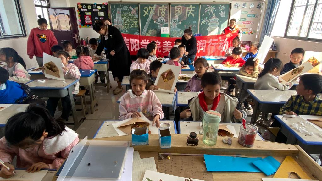 根据信阳学院关于开展“美育浸润行动计划”的整体部署和要求,10月25日下午,教育学院一支由专业教师及学生志愿者组成的团队,前往平桥区长台乡格林斯学校开展美育活动。