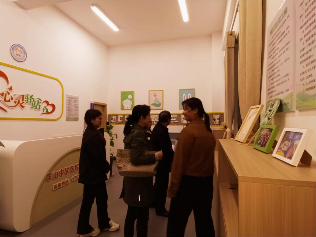 随后,我院教师与羊山中学的相关领导老师进行了座谈。双方就羊山中学心理健康中心的建设、实习生的培养以及未来的合作方向进行了充分的交流,双方表示将加强联系、共同努力,为提升中学心理健康服务水平持续合作。