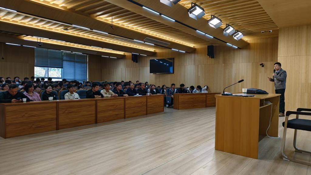11月6日下午,信阳壹贰叄柒建筑科技有限公司总经理曾成应邀在图书馆101报告厅为智能建造专业2024级新生带来了一场主题为《建筑产业化背景下装配式内装的实践与思考》的专题讲座。此次活动旨在帮助新生深入了解本专业的最新发展动态和前沿技术。土木工程学院教学副院长杨子泉出席了报告会。智能建造教研室主任黄小林及教研室全体教师、辅导员陈曼怡及智能建造专业2024级新生共同聆听了报告。黄小林主持了报告会。