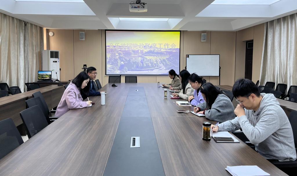 为共同商讨推进学院近期各项重要工作,11月11日上午,音乐学院在艺术楼215会议室召开党政联席工作会议。党总支书记郝昊,副院长杨辉,各教研室主任及所有班子成员共同参加了会议。杨辉主持了会议。