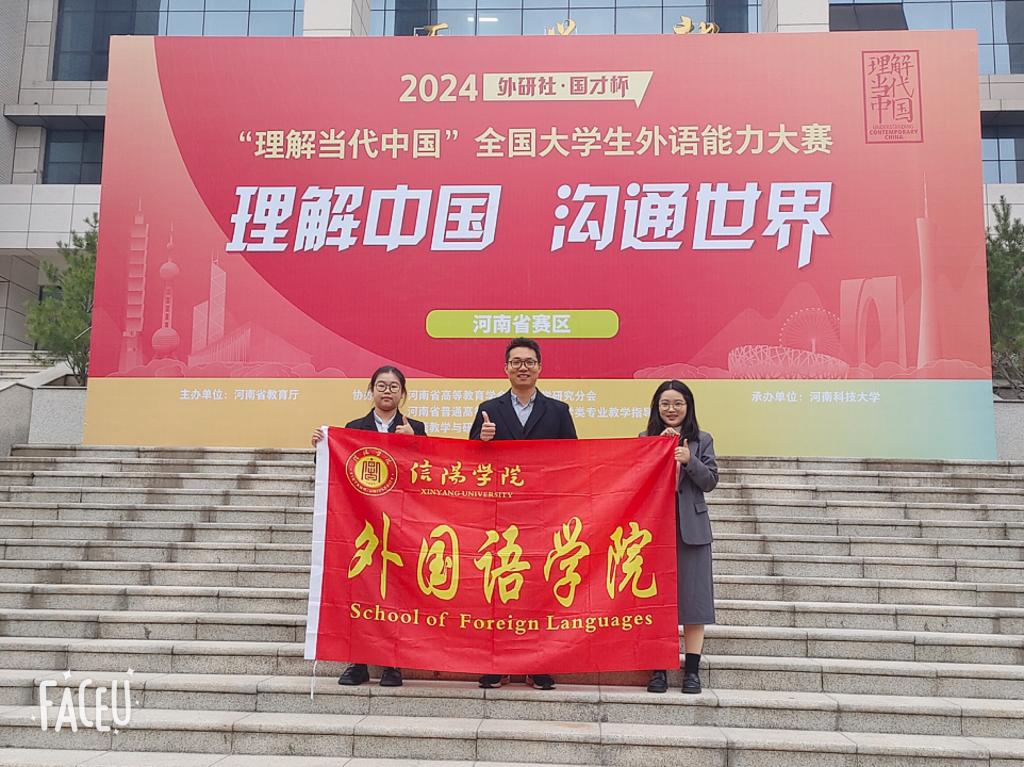 近日,2024外研社·国才杯“理解当代中国”全国大学生外语能力大赛河南省赛在华北水利水电大学和河南科技大学举行。我校外国语学院学生参加了综合能力、笔译、口译、演讲赛项,经过激烈角逐,荣获特等奖2项、一等奖1项、二等奖6项、三等奖3项。