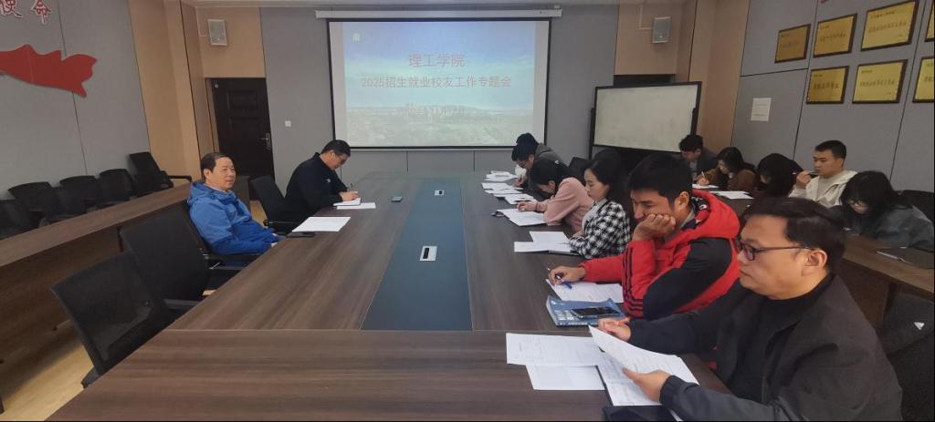 11月12日上午,理工学院在理工楼201会议室召开了2025招生就业校友工作专题会。院长肖生发、学工秘书杨晓杰和全体招生就业指导老师参会。
