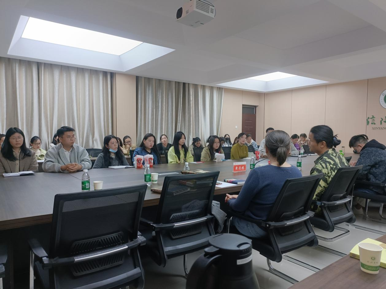 最后,与会教师和黄清穗教授进行了深入的沟通交流,讨论了如何在教学和科研中更好地结合传统纹样与现代设计。黄教授的见解和建议为教师们提供了新的思路和方向。本次教学研讨活动为参与教师提供了一个深入了解传统纹样与现代设计结合的平台,同时也为信阳学院乃至更广泛的学术界和设计界提供了宝贵的交流与学习机会。
